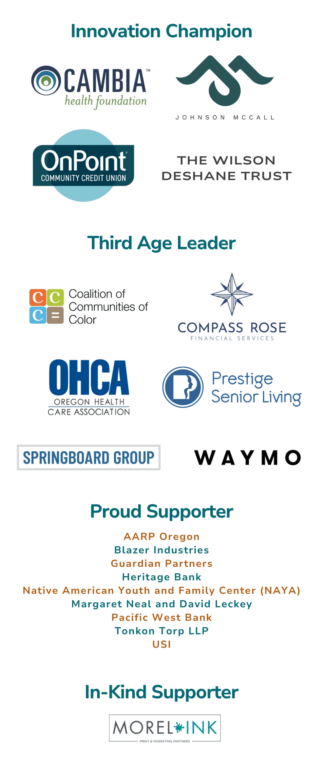 Mark your calendars for an unforgettable celebration on April 15, 2026 at 11:30am PT. Join us in-person at AVENUE Portland or virtually as we honor Judy Knawls Boyer, Tony Leineweber, and Jo Anne Sutherland—incredible Oregonians who are strengthening their communities and showing that aging is living!