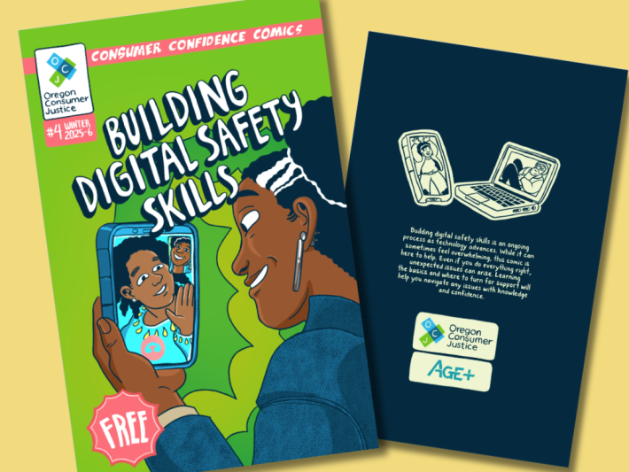 AGE+ is proud to have partnered with Oregon Consumer Justice on their latest Consumer Confidence Comic, Building Digital Safety Skills! This fun, easy-to-read resource gives older Oregonians practical tips for securely navigating the digital world, from keeping personal information secure to avoiding scammers and connecting with support.